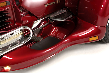 with turn-signal activated cornering lights, rubber foot rest protectors and side marker reflectors.